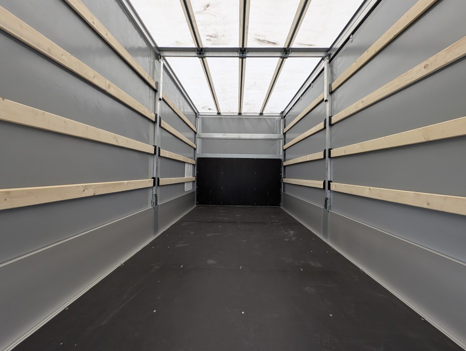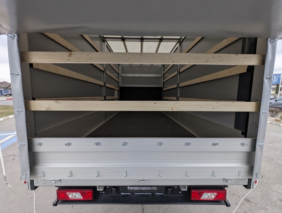 Prelată de densitate mare (680 gr/mp), prevăzută cu benzi de uzură. Închidere pe laterale cu capse (2 rânduri pe oblon) și chingă siliconică pe înălțime.
